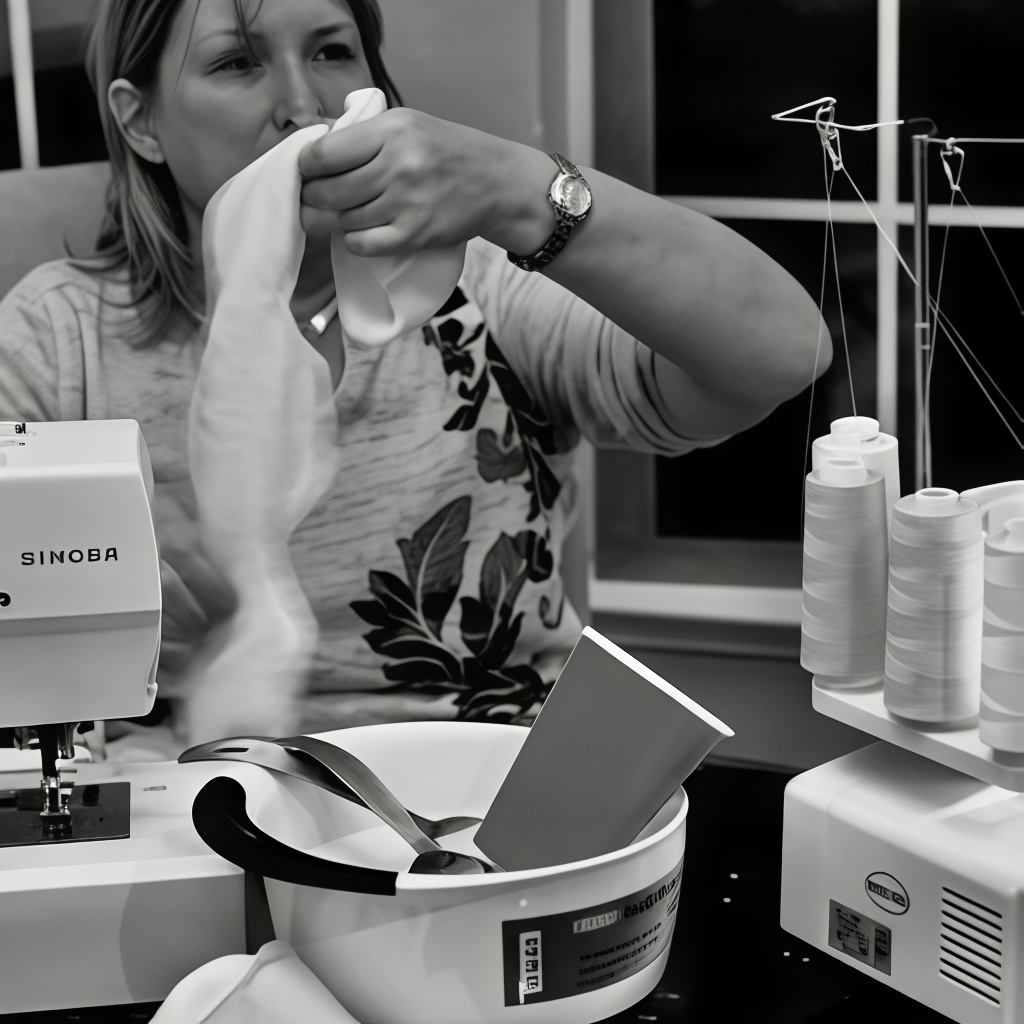 My mom helping me construct the very first Nodpod prototype in my kitchen. After